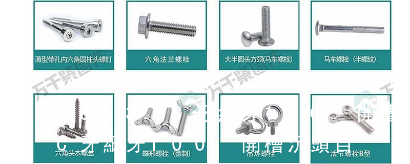 最常見的是六角頭螺栓 國標GB5783 GB5782 德標Din933 Din931 (8.8級粗牙外六角螺栓)圓柱頭內六角螺釘 國標GB70.1 德標Din912 還有很多像什么盤頭十字螺釘 沉頭十字螺釘 開槽盤頭螺釘 開槽沉頭螺釘等等很多種。 英制自攻牙:規格4#5#6#7#8#10#12#14#牙數AB牙2420201918161414A牙2420181615121110材料一、目前市場上標準件主要有碳鋼、不銹鋼、銅三種材料。