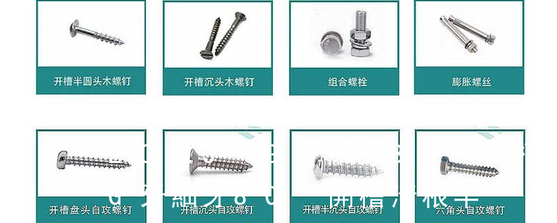 (鐵板牙自攻螺絲) B-2: Plastic Tapping Screw. (塑膠用,自攻螺絲) C: Wooden Screw : 木工螺絲 D: Drywall Screw :水泥墻螺絲 E: Self Drilling Screws鉆尾螺絲(不銹鋼鉆尾螺絲,復合材料鉆尾螺絲) F:膨脹螺絲,四片膨脹螺絲又 P是指頭型是PAN頭;A是指尖尾牙,B是指鐵鋼牙,即PA元頭尖嘴鋼牙,PB元頭平嘴鋼牙。 自攻類: ◆圓頭自攻螺絲PA ◆圓頭平尾自攻螺絲PB ◆圓頭割尾自攻螺絲PT ◆圓頭帶介自攻螺絲PWA ◆圓頭帶介平尾自攻PWB ◆圓頭帶介割